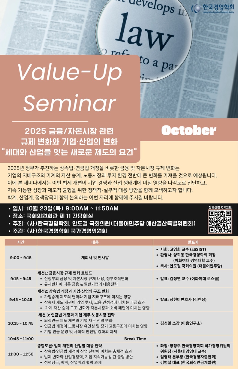 [자료, 동영상][2025.10.23] Value-Up Seminar 2025 금융/자본시장 관련 규제 변화와 기업·산업의 변화