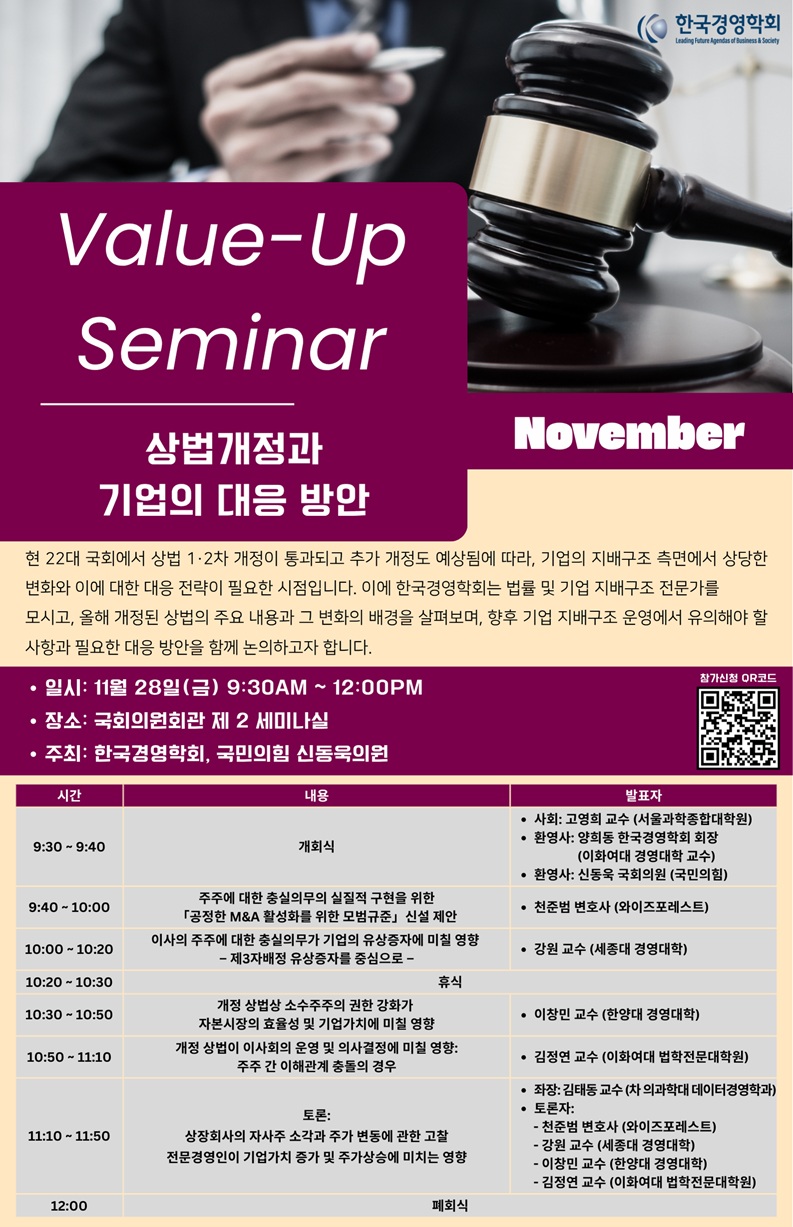 [자료, 동영상][2025.11.28] Value-Up Seminar 상법개정과 기업의 대응 방안