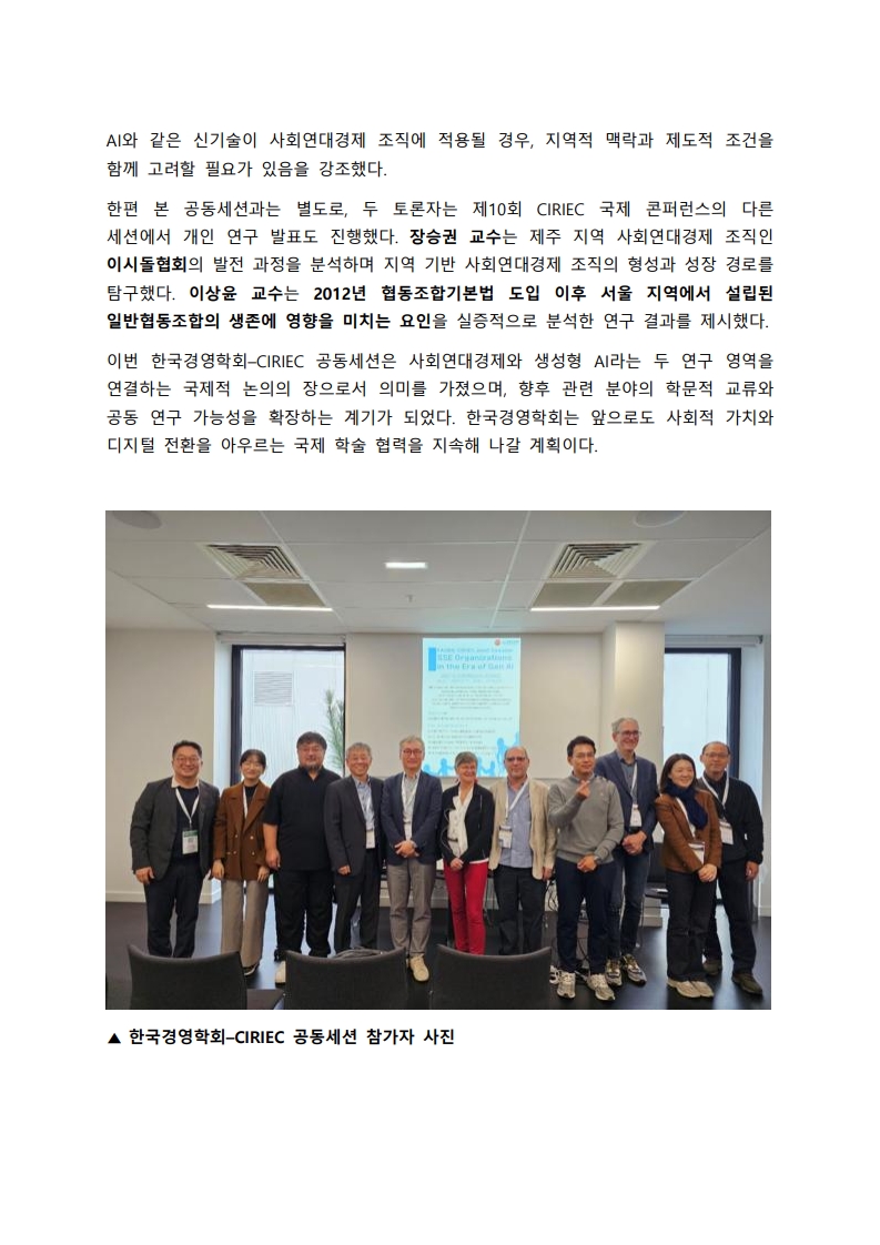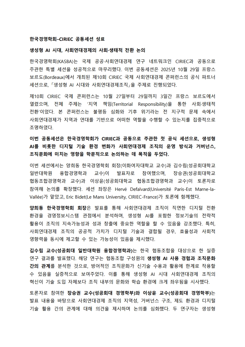 한국경영학회–CIRIEC 공동세션 성료