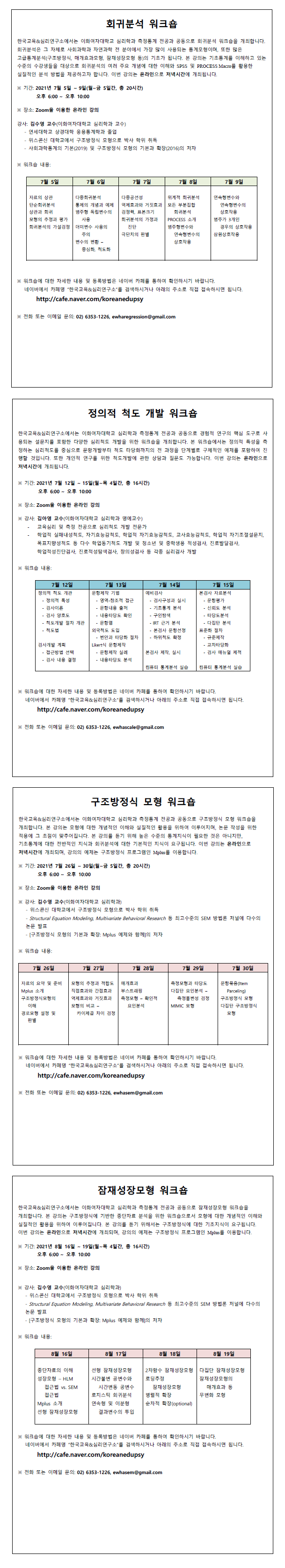 [이화여대 심리측정통계 연구실] 2021년 하계 방법론 워크숍