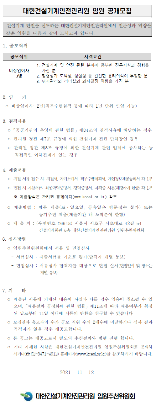 [대한건설기계안전관리원] 비상임이사 추천의 건