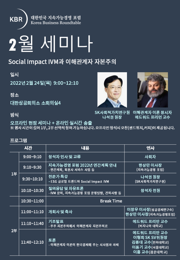 문의: 지속가능경영 포럼 박연희 간사(010-7534-1788, kbr@kbrt.or.kr)