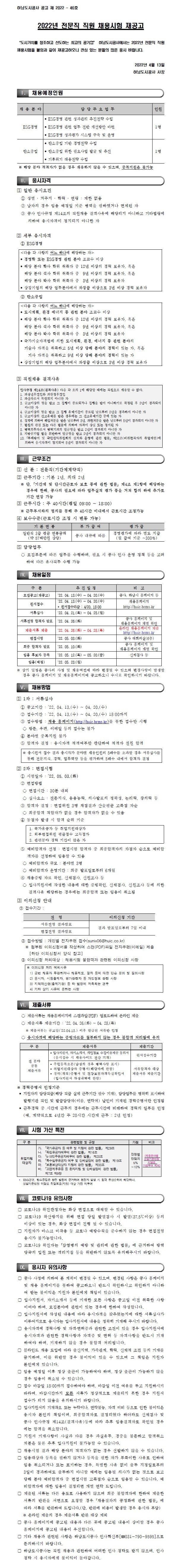 [하남도시공사] 2022년 ESG경영 및 탄소중립 경영 전문직 직원 채용 공고