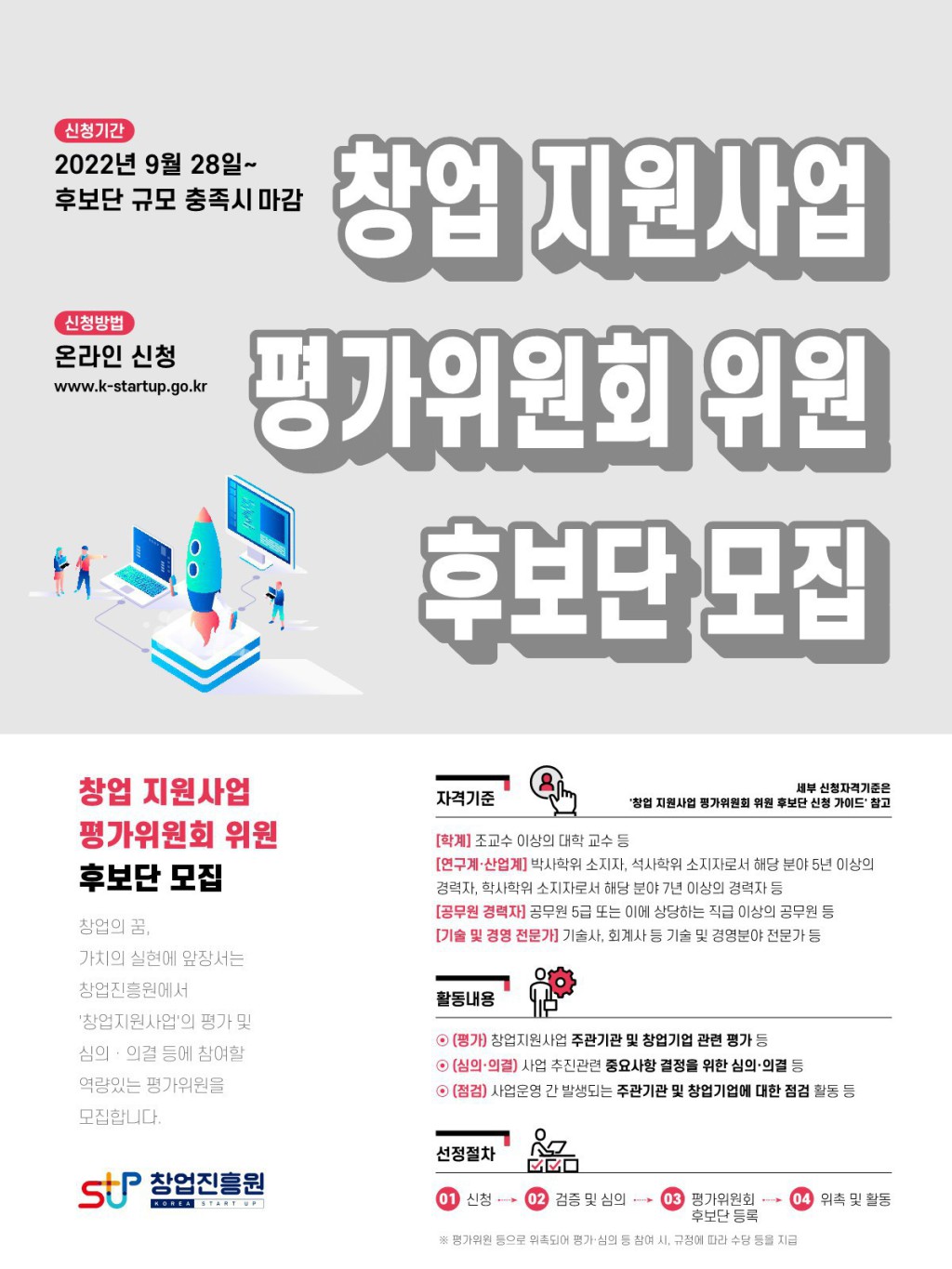 [창업진흥원/창업성장총괄실] 창업 지원사업 평가위원회 위원 후보단 모집