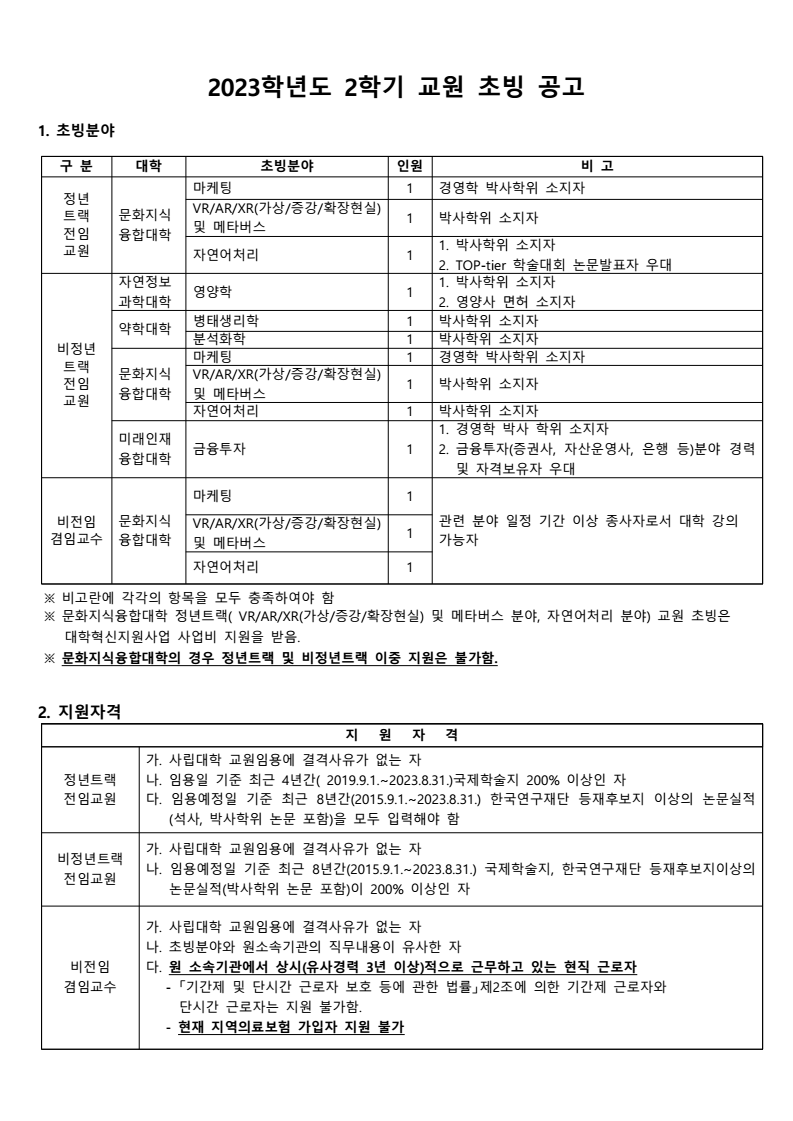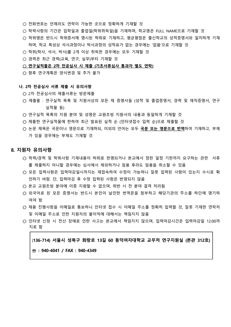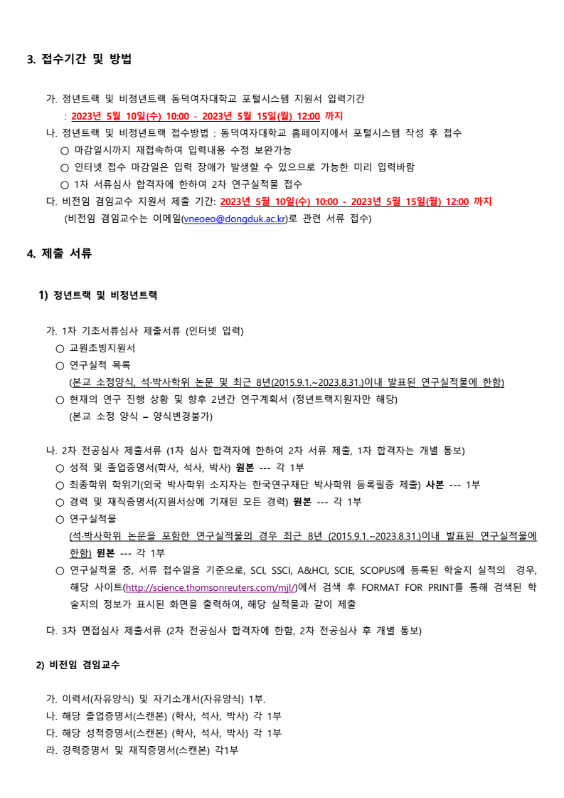 [동덕여자대학교] 2023년도 2학기 전임교원 초빙 공고