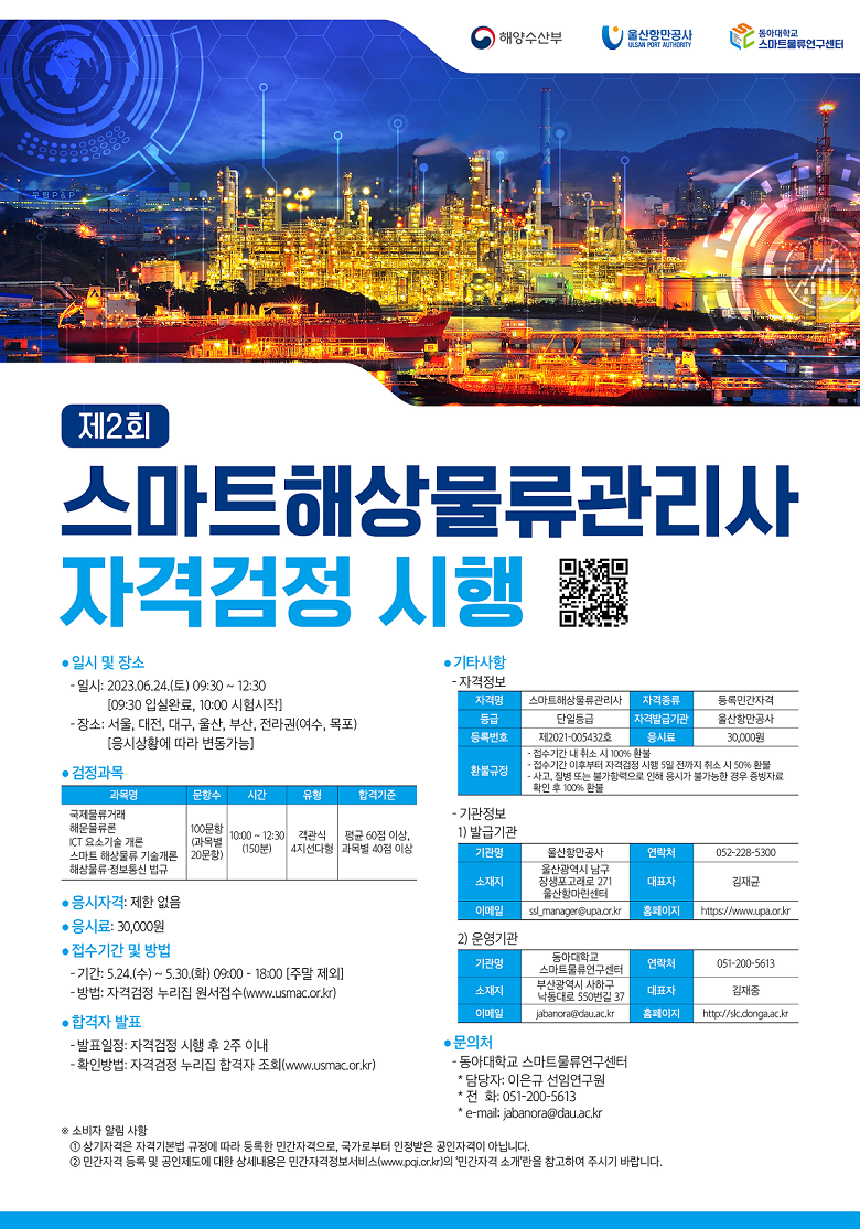 [동아대학교] 제2회 스마트해상물류관리사 자격검정 시행 안내