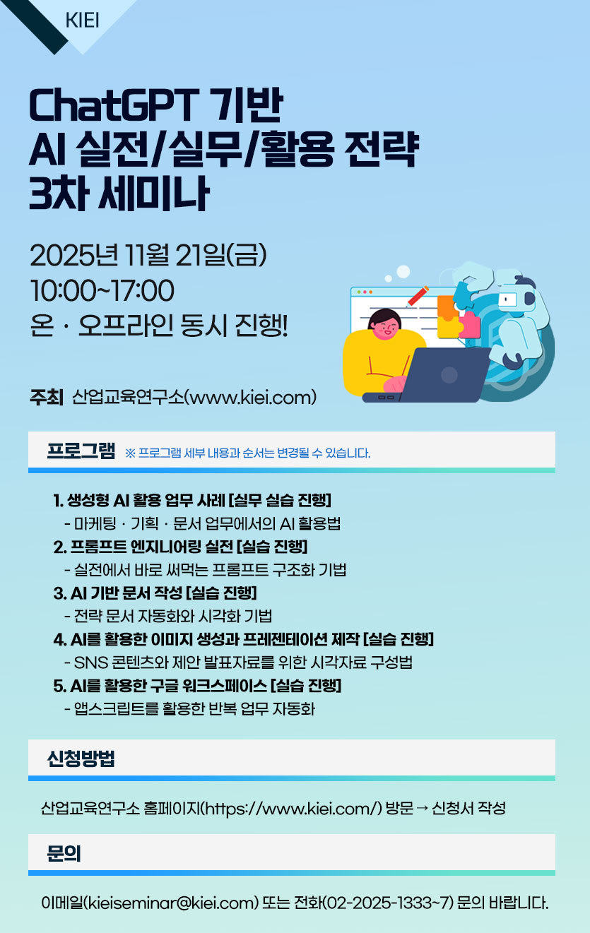 [산업교육연구소] ChatGPT 기반 AI 실전/실무/활용 전략 3차 세미나 안내
