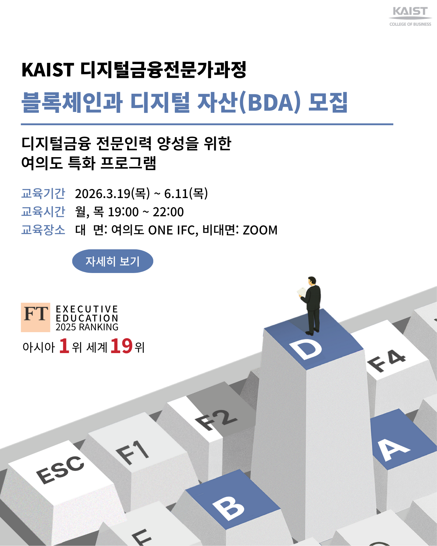 2026년 상반기 [디지털금융전문가과정: 블록체인과 디지털 자산(BDA) 6기] 과정생을 모집합니다.