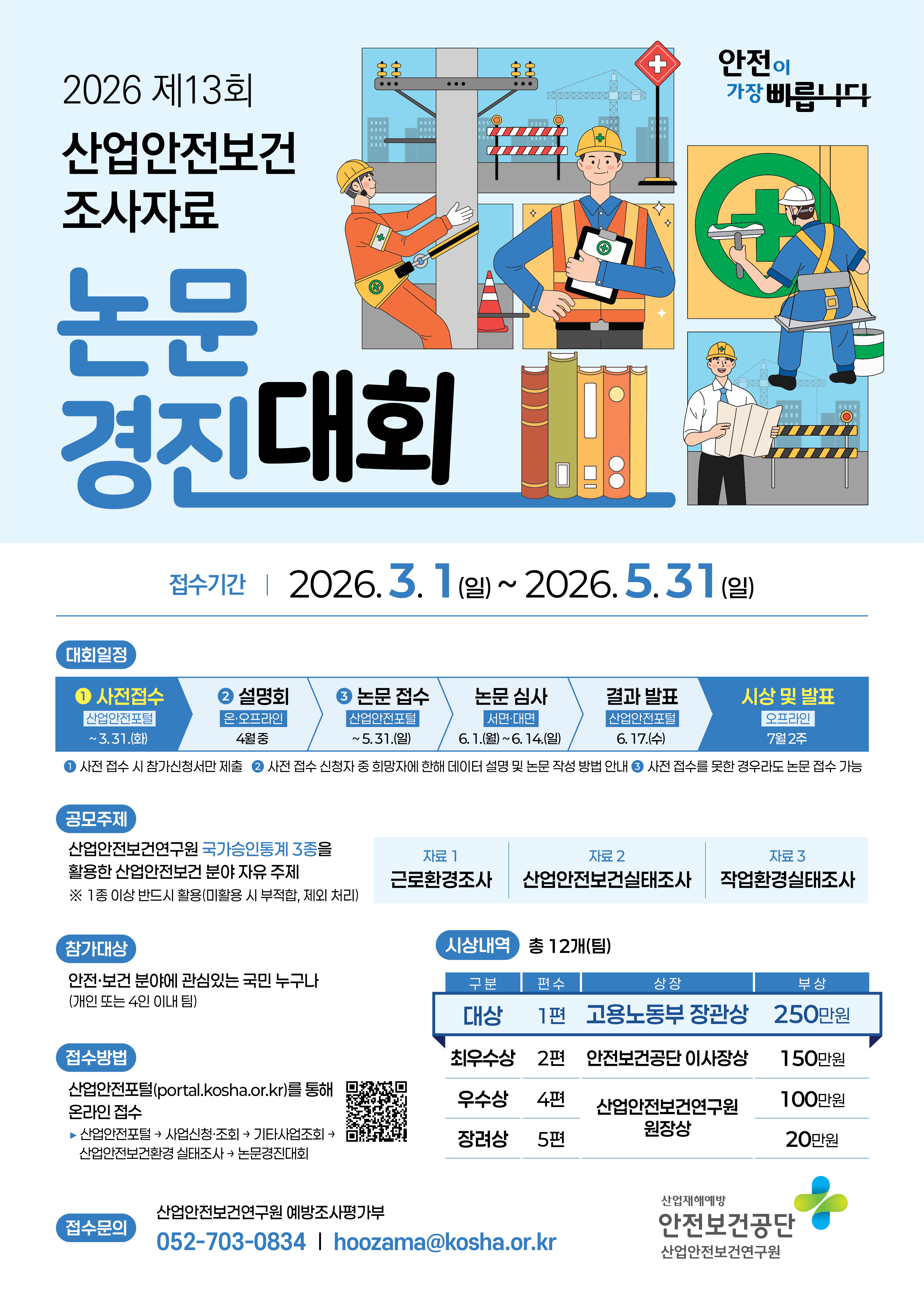 [산업안전보건연구원] 산업안전보건 조사자료 논문경진대회 안내