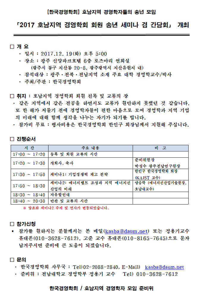 [한국경영학회] 호남지회 송년 세미나 겸 간담회 안내 (12/19(화) 개최)