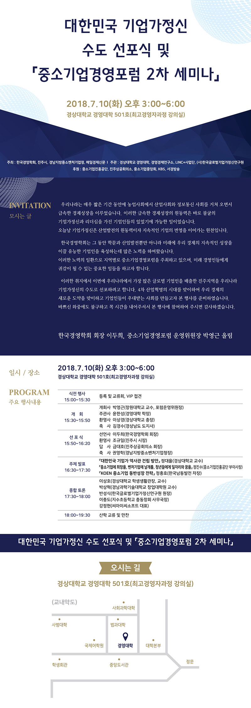 [한국경영학회] 대한민국 기업가정신 수도 선포식 및「중소기업경영포럼 2차 세미나」