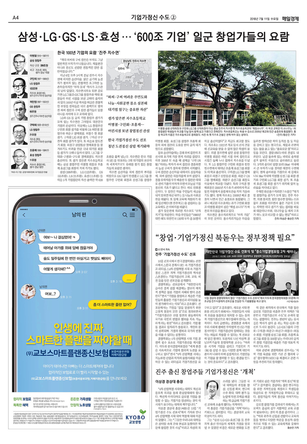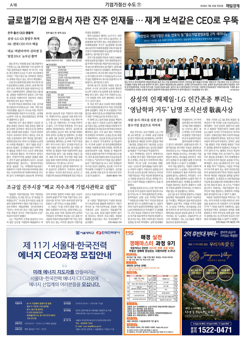 한국경영학회는 지난 7월 10일 우리나라 기업인들의 산실인 경남 진주시를 '대한민국 기업가정신 수도'로 선포하는 선포식 및 중소기업경영포럼 2차 세미나를 거행하였습니다.