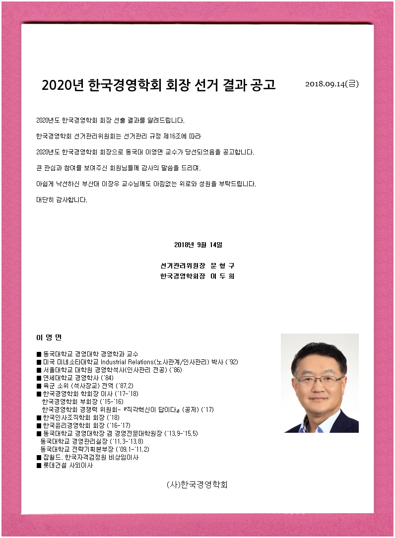 [한국경영학회] 2020년 회장 선거 결과 공고
