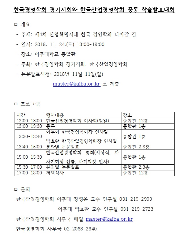 한국경영학회 경기지회와 한국산업경영학회 공동 학술발표대회