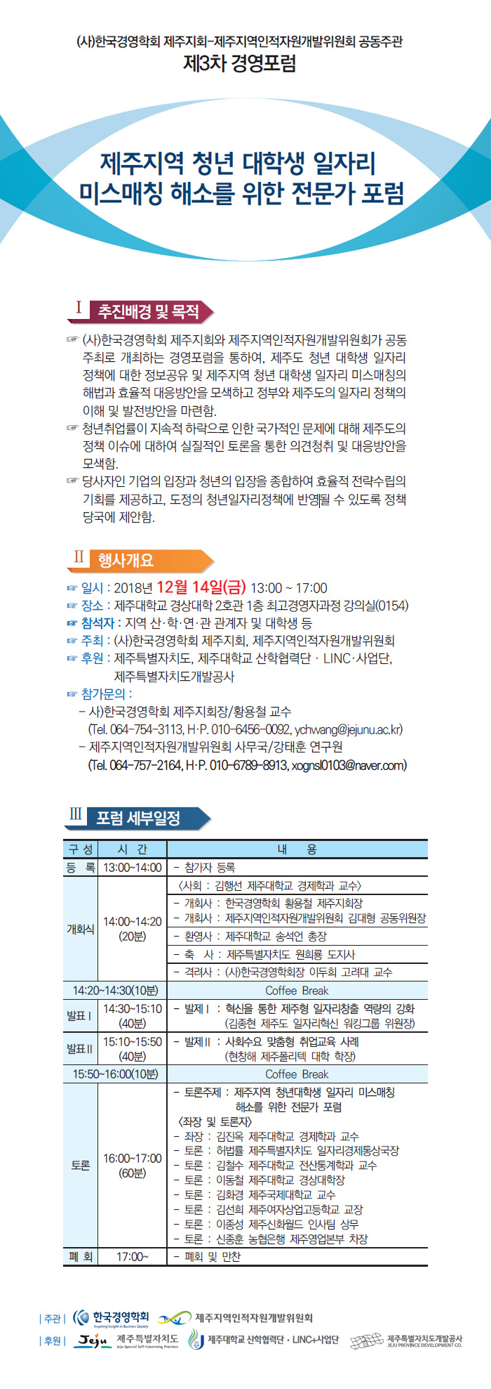 [한국경영학회] 제주지회 2018 제3차 경영포럼 안내 (12/14(금) 개최)