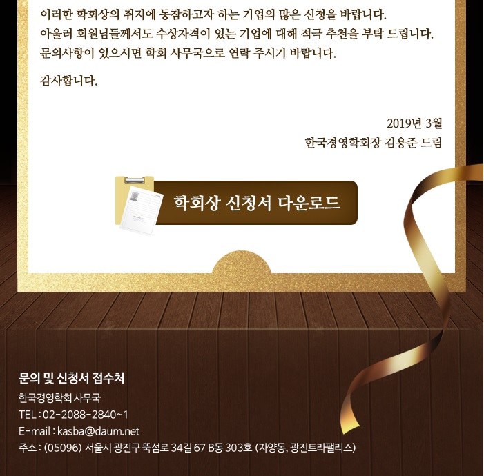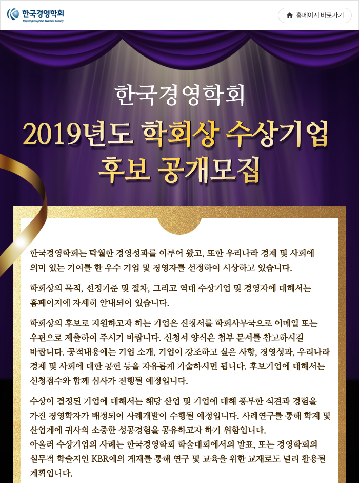 [한국경영학회] 2019년도 학회상 수상기업 후보 공개모집