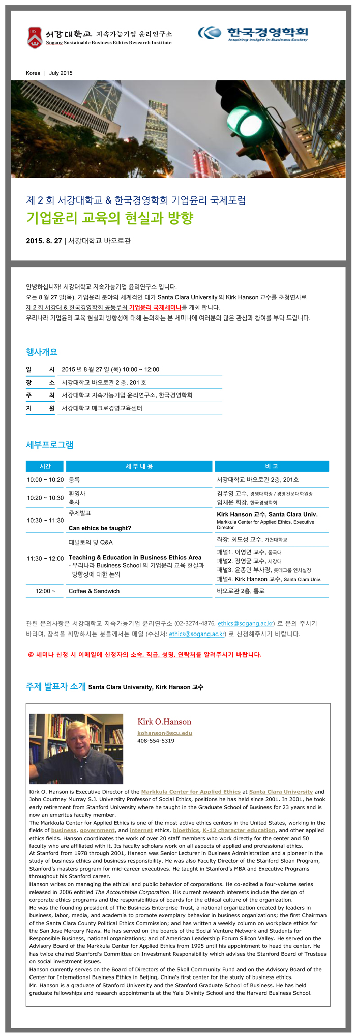 [한국경영학회] 서강대학교 & 한국경영학회 기업윤리 국제포럼