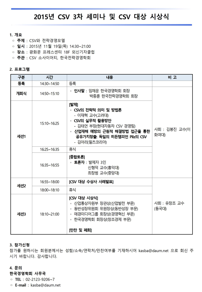 [한국경영학회] CSV 3차 세미나 및 CSV 대상 시상식