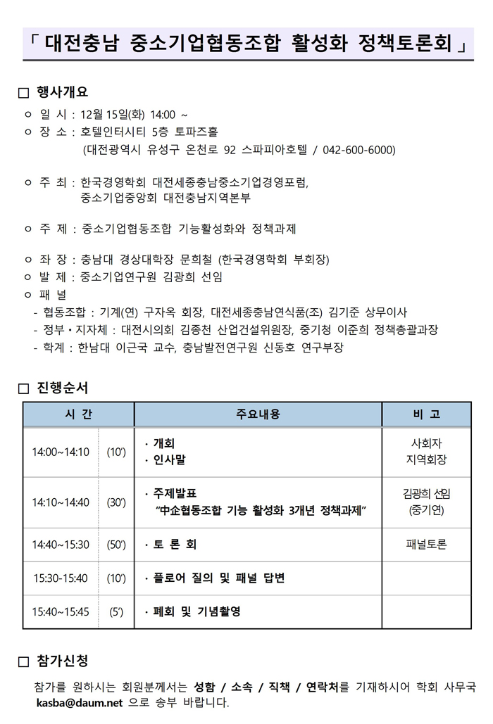 [한국경영학회] 대전충남 중소기업협동조합 활성화 정책토론회