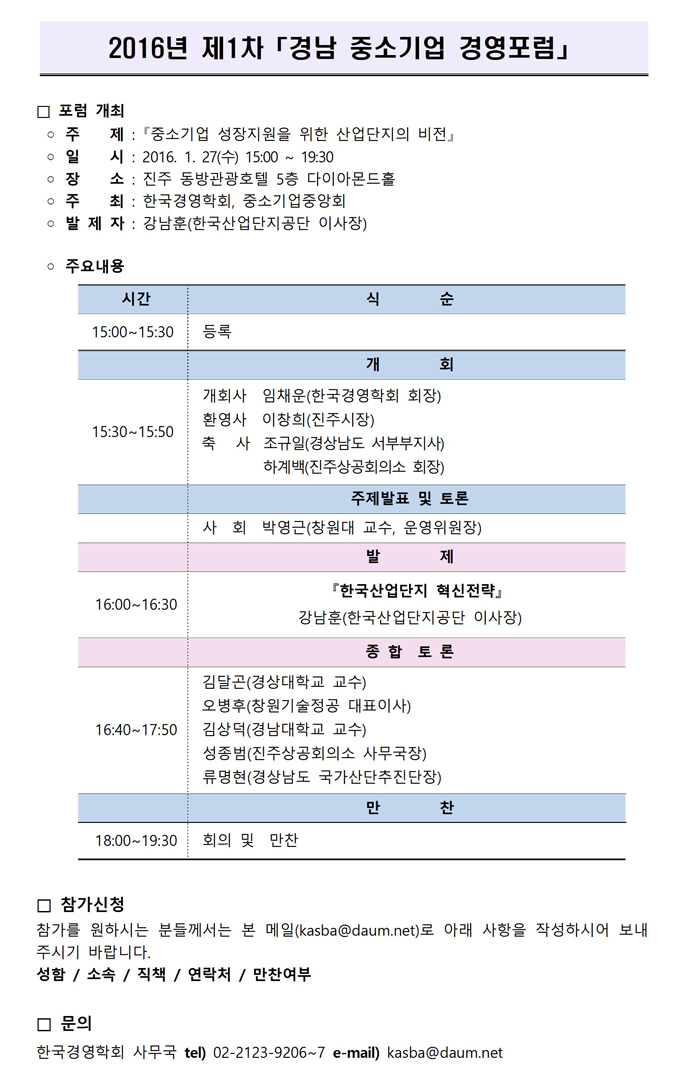 [한국경영학회] 경남 중소기업경영포럼