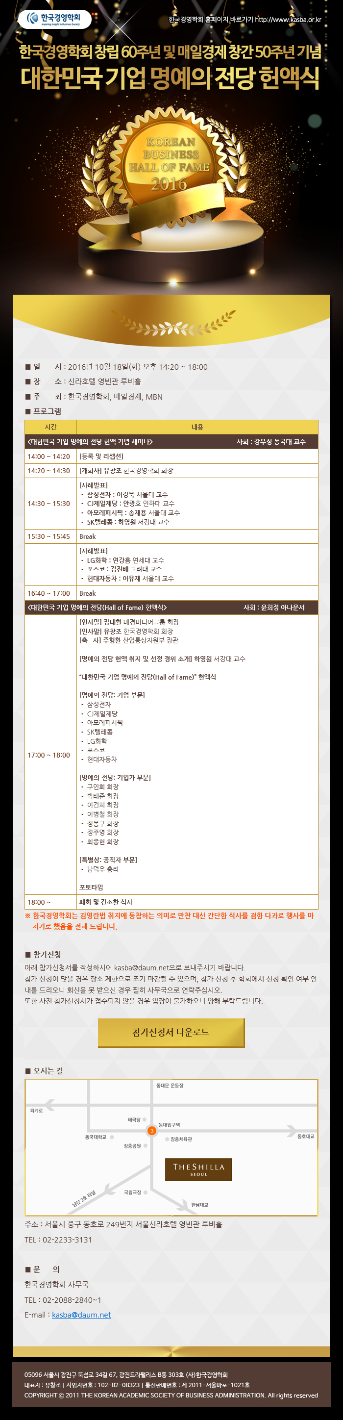 [한국경영학회] 60주년 기념 대한민국 기업 명예의 전당 헌액식 " 초청 안내"