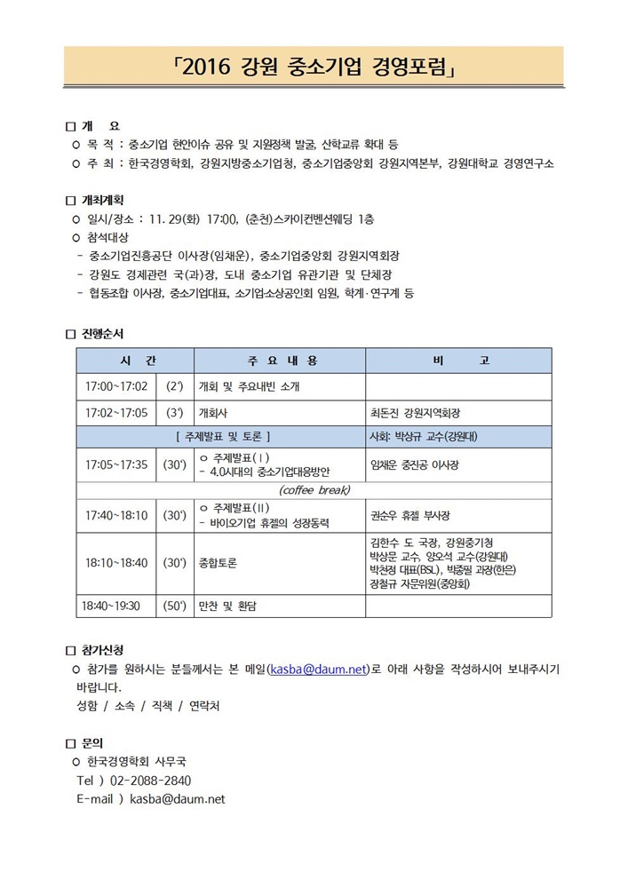 [한국경영학회] 2016 강원 중소기업 경영포럼 안내