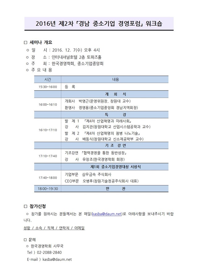 [한국경영학회] 2016년 제2차「경남 중소기업 경영포럼」워크숍