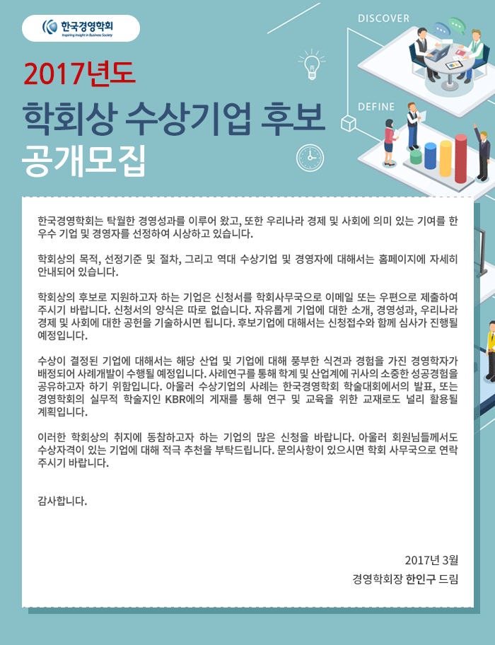[한국경영학회] 2017년도 학회상 수상기업 후보 공개모집