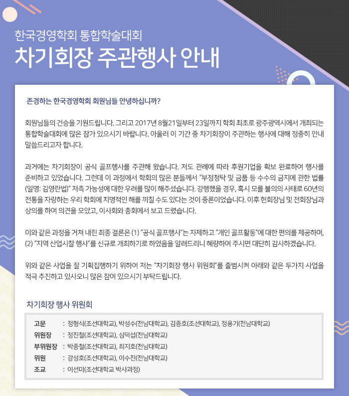 [한국경영학회] 차기회장 주관행사 안내 (신청기간 ~6/30(금))