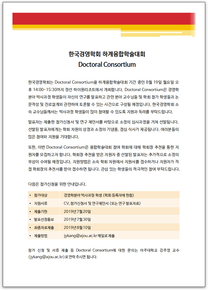[한국경영학회] 하계융합학술대회 Doctoral Consortium 참가 안내