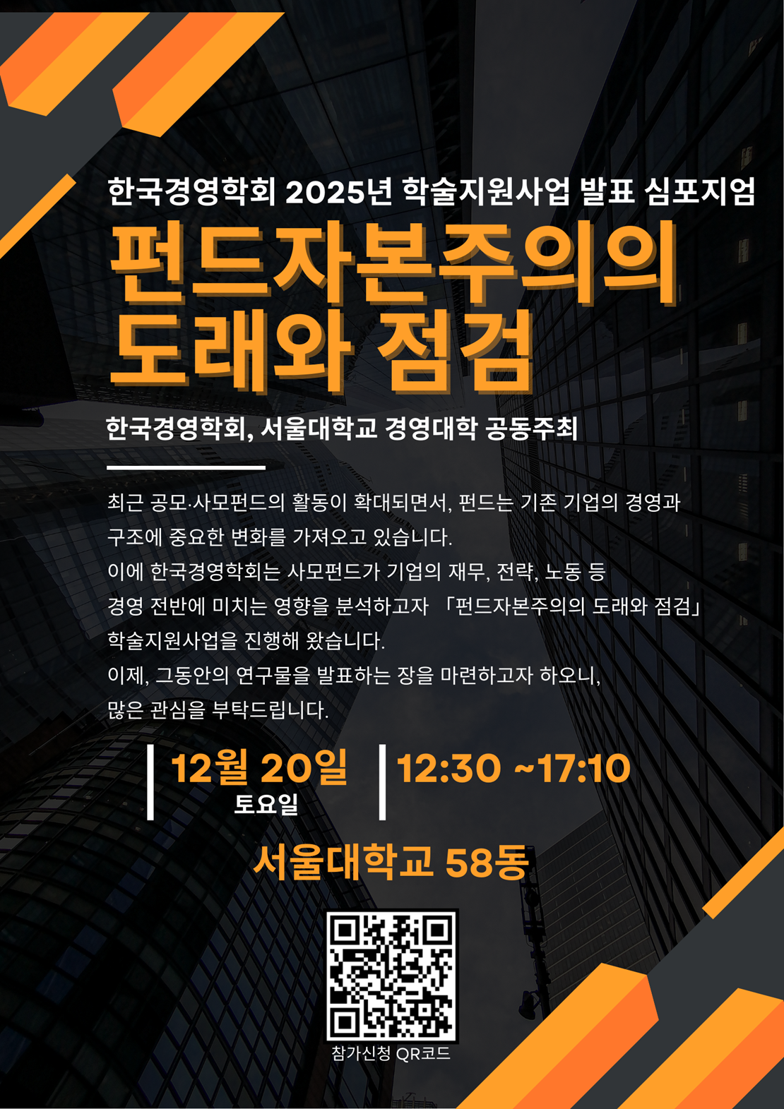 [한국경영학회] 2025년 학술지원사업 발표 심포지엄 안내 "펀드자본주의의 도래와 점검"